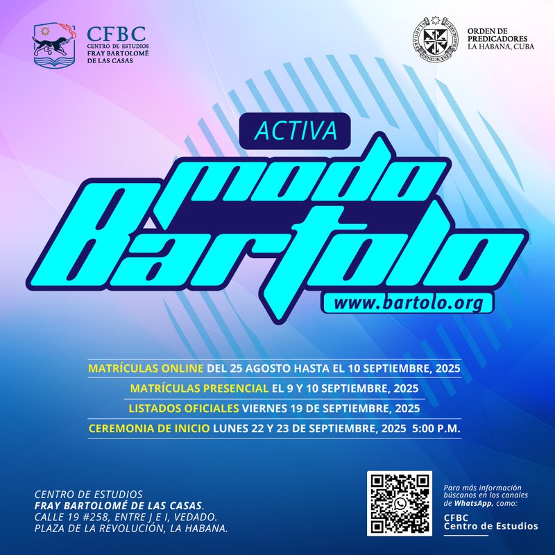 Centro Fray Bartolomé de las CasasTiempo de Matrículas 2025 desde el 25 de agosto hasta el 10 de septiembre 2025. Los días 9 y 10 ...